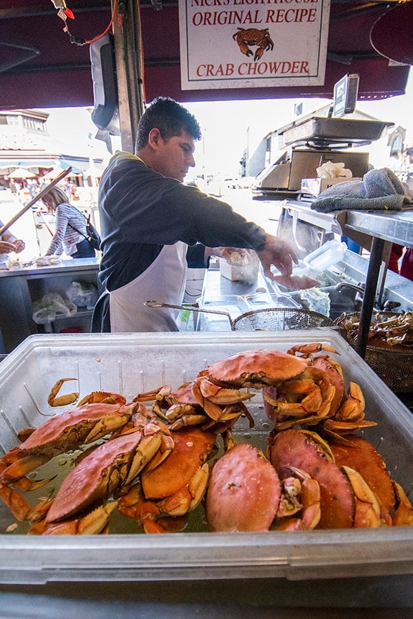 Pro Tip: If you grab fresh crab from the food stalls at Fisherman’s Wharf, walk up a couple blocks afterwards to enjoy it at the San Francisco Maritime National Historical Park.