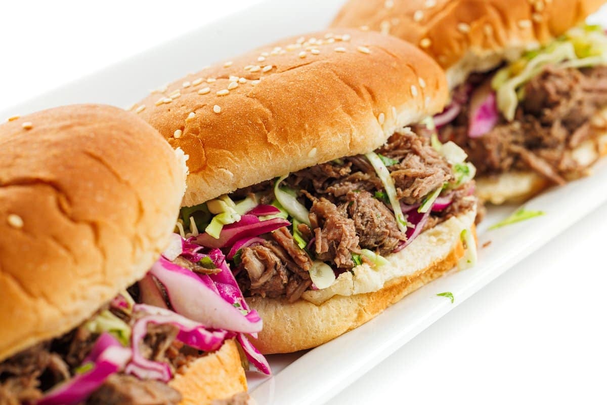 - Shredded beef sliders: Perfect for a casual dinner or weekend lunch, these sliders come together in minutes using leftover slow cooker shredded beef, a quick coleslaw, and soft whole wheat buns. I grab slider rolls and pre-shredded cabbage from D&W to save time.