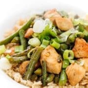 A fast, easy and healthy dinner recipe, this flavorful Chicken and Green Bean Stir-Fry comes together in just 20 minutes!