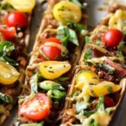 A modern twist on Lebanese stuffed eggplant, this 5-ingredient slow cooker meal of eggplant and beef is slowly simmered in a warm, cinnamon-spiced tomato sauce.