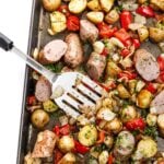 My favorite things about sheet pan meals are that all of your food is done at once, no watching multiple pans at once, and that you don’t have to worry about washing a ton of dishes afterwards.