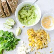 I’ve got your ideal margarita best friend. Besides a straw. It’s toast! Not just any toast. Toast with smashed avocado and grilled, charred, buttery corn. Crumbly, fresh cheese. Spices and herbs. Lime and salt. Oh my! Pass the tequila. We’re starting Friday with a no-recipe recipe. You know? Like no…