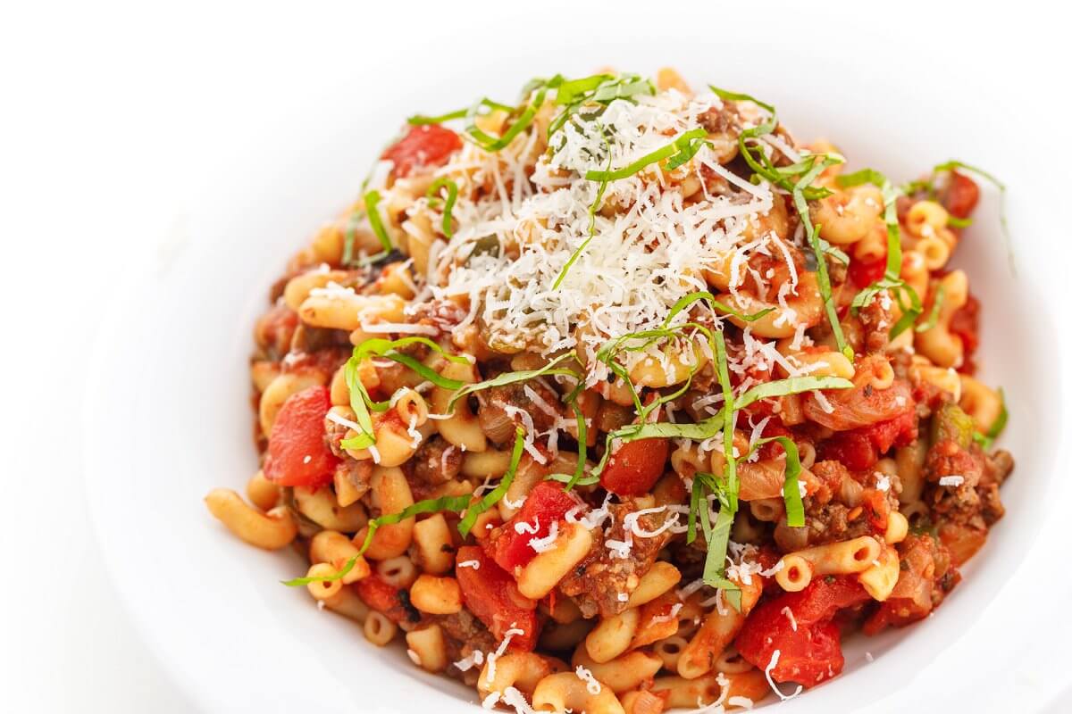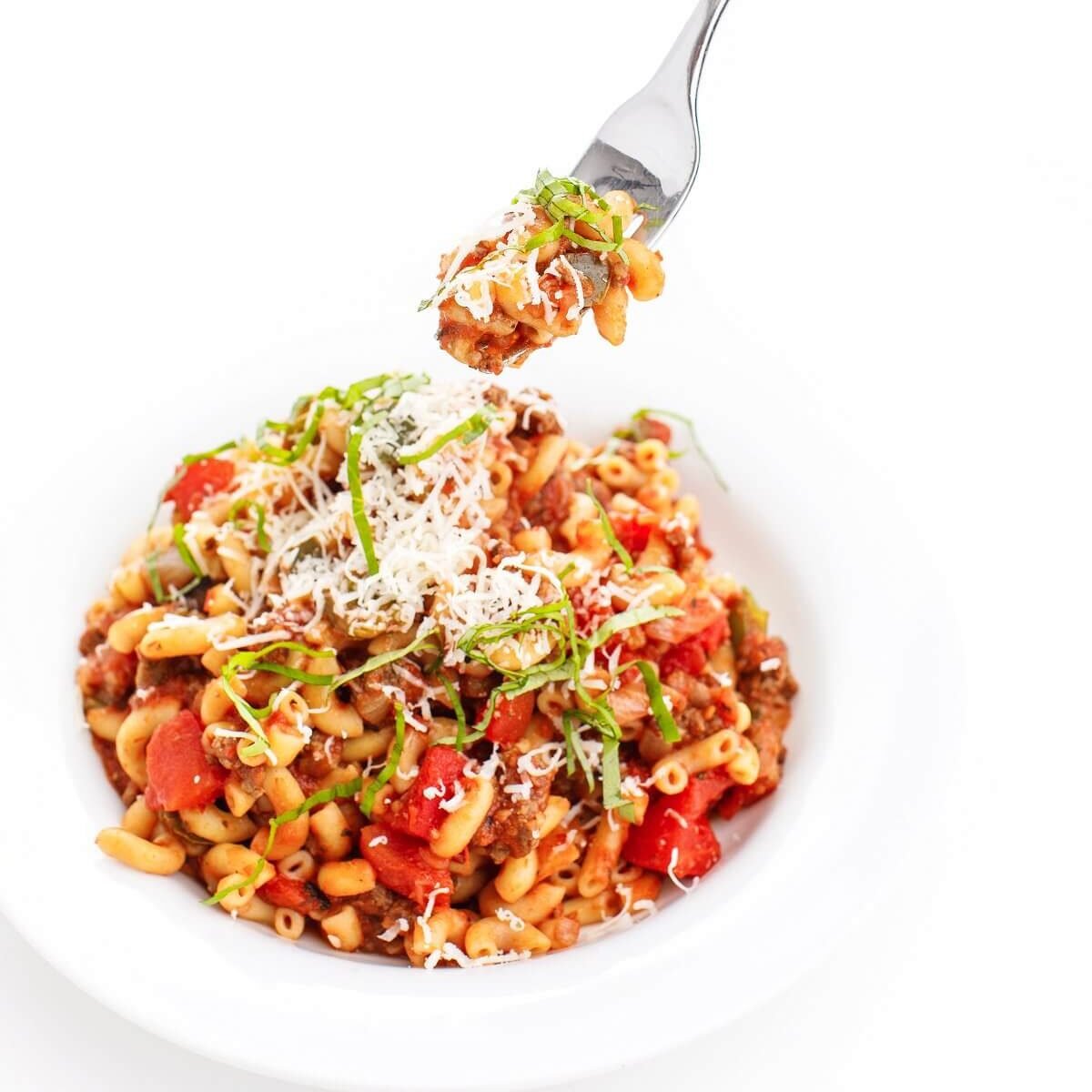 American goulash, is a simple macaroni pasta dish made with a hearty meat sauce. Family-friendly and crowd-pleasing, this dish is affordable and delicious!