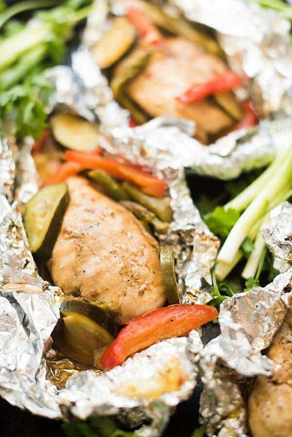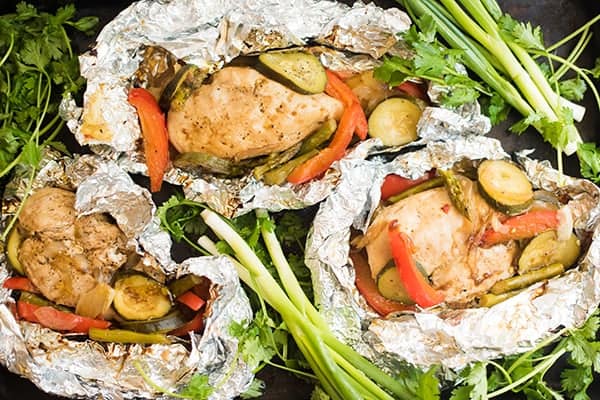 Since the chicken and vegetables cook in a tightly wrapped foil packet, steam cooks the dish ensuring tender, juicy chicken every time.