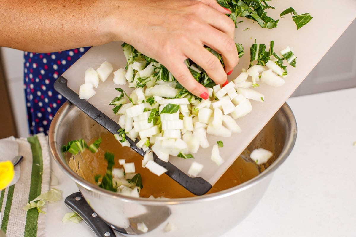 Other great options would be sliced red onion if you don’t have scallions, chopped kale if you don’t have bok choy or celery if you don’t have cabbage. Make it your own!