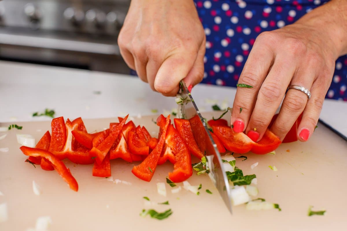 We happened to have bok choy, cabbage, carrots and bell peppers but this recipe is extremely versatile so use whatever you have on hand or is in season!