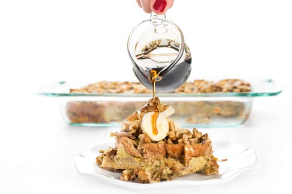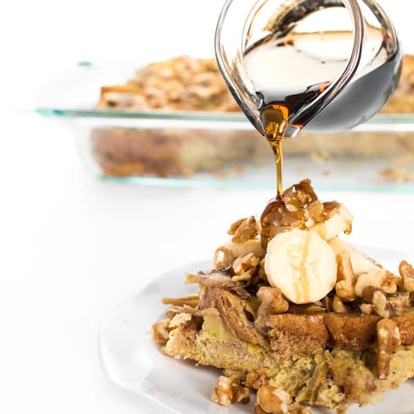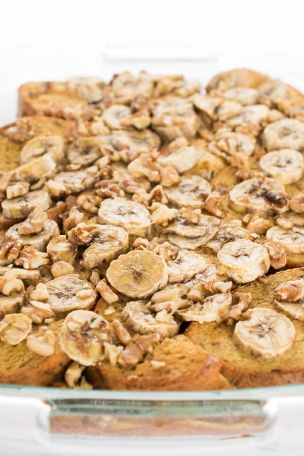 This warm and satisfying banana nut French toast bake is ideal for prepping ahead and baking in the morning. The ultimate crowd-pleasing breakfast recipe!