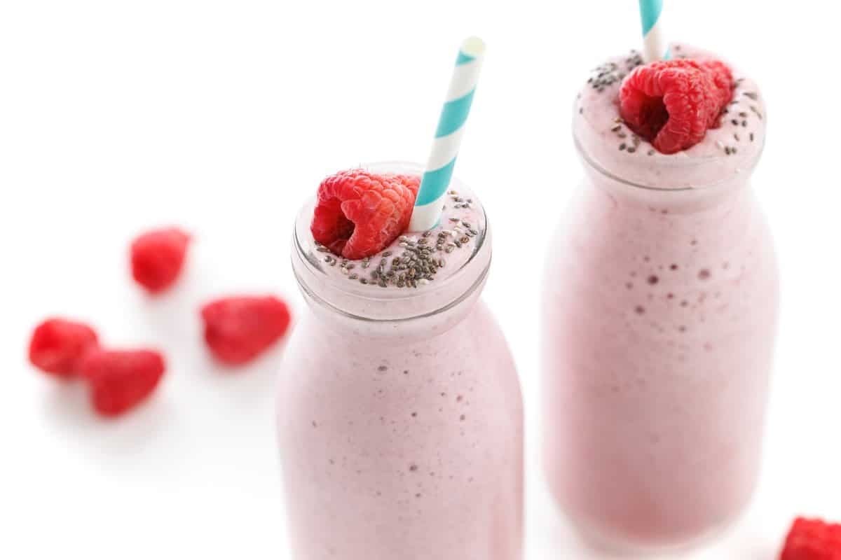 This naturally sweet, protein-packed banana raspberry chia smoothie is perfect for busy mornings or sipping on-the-go.