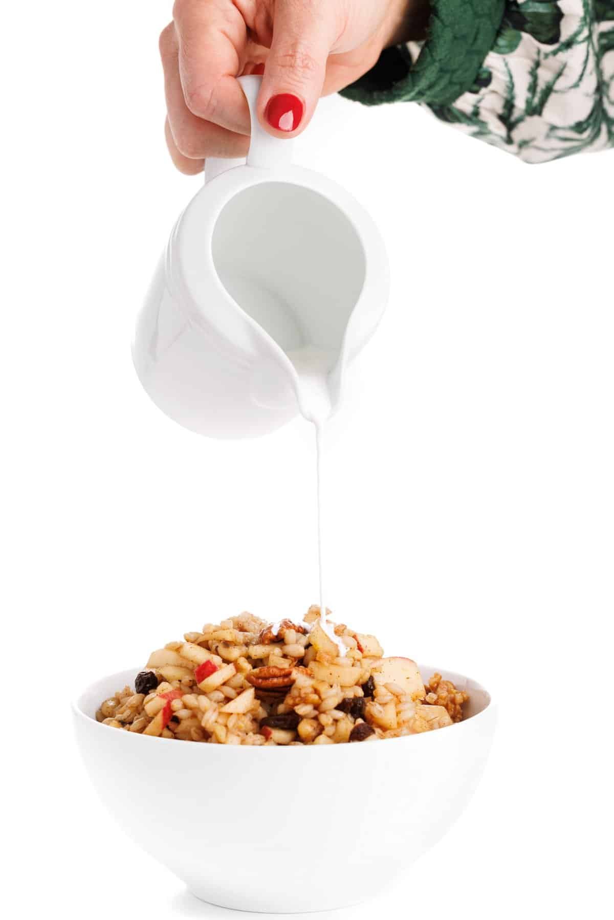 Serve with your choice of milk if desired, and enjoy your Barley Breakfast Bowl!
