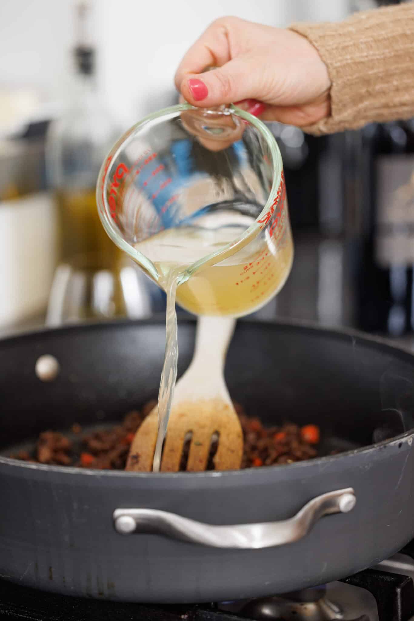 The alcohol burns off, leaving the delicious flavors and acidity that cuts through the rich pasta sauce. So it’s totally fine to serve this dish to adults and kids alike! If you’re worried at all, just use additional beef stock to deglaze the pan.