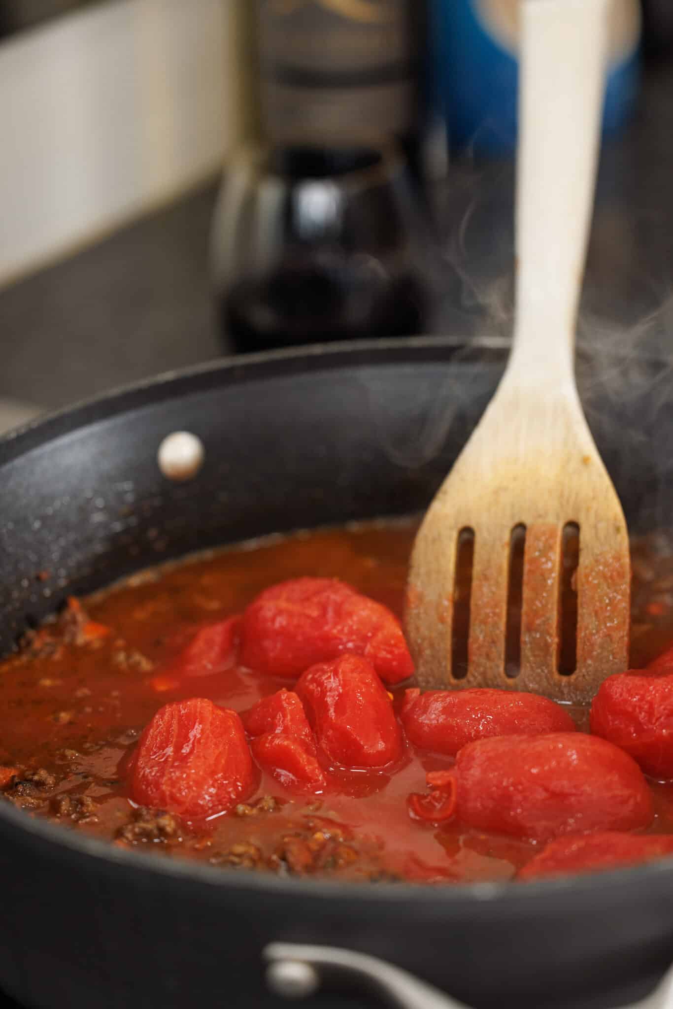 - Peeled tomatoes: With the carrots and beef, it adds substance, making it the hearty sauce you want and expect from a Bolognese.
