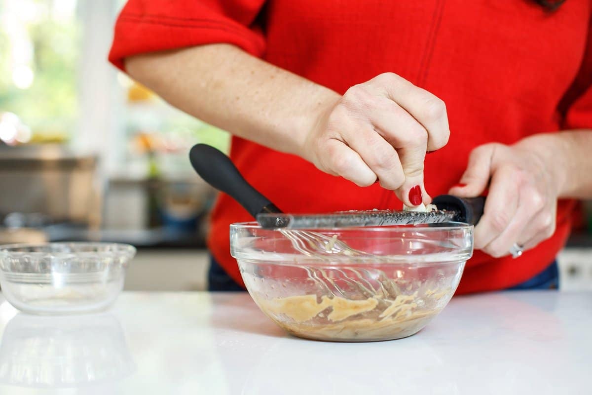 Next add the fresh ginger, garlic, and lemon juice. Whisk well until all combined.