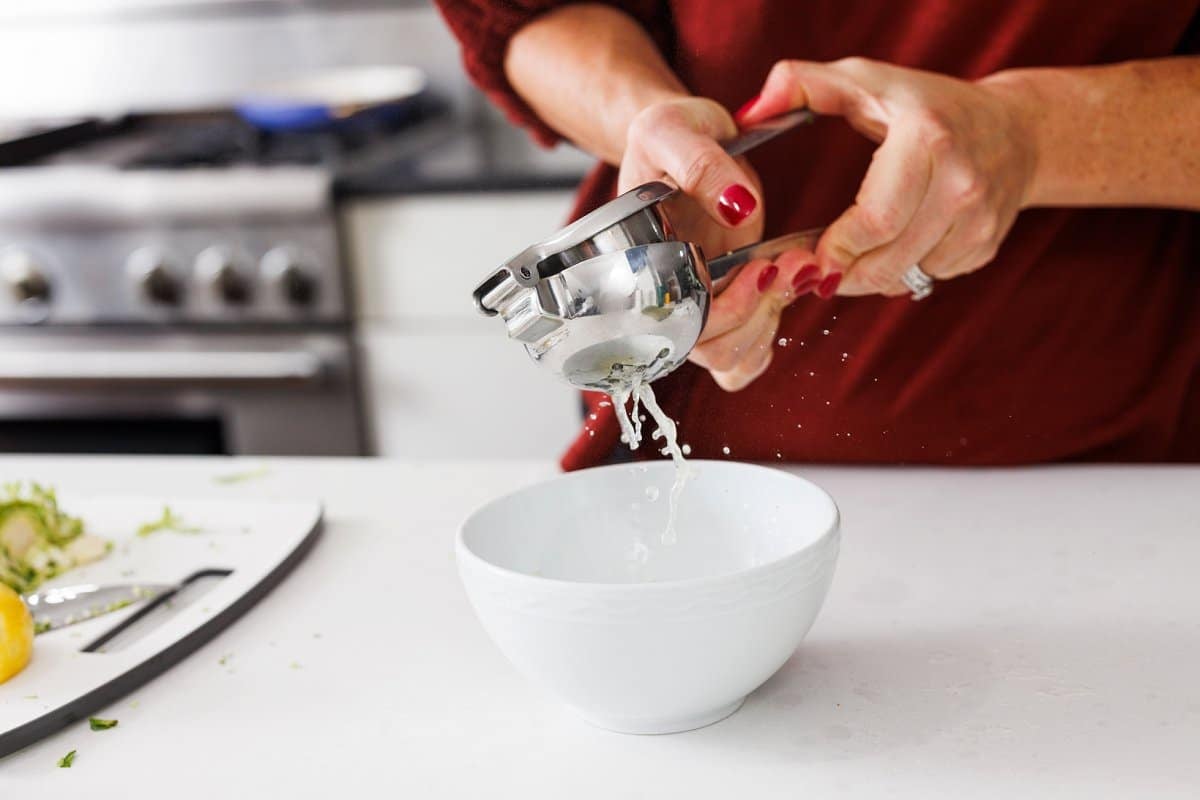 Next you’ll top the Brussel sprouts with the lemon juice and olive oil. Make sure you zest the lemon before juicing it!