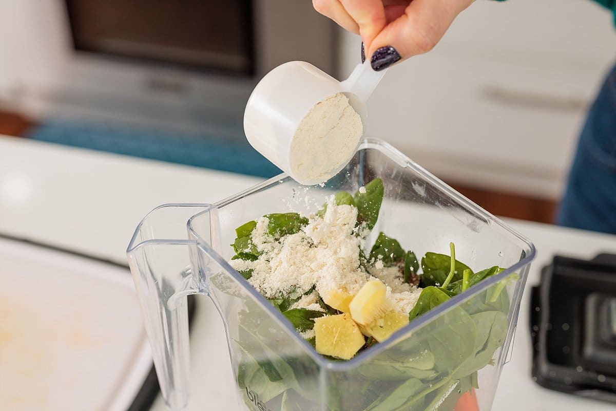 - Protein powder: Packing in the protein will help to keep you feeling full until lunch. Use a plant based protein powder to keep this smoothie vegan and vegetarian.