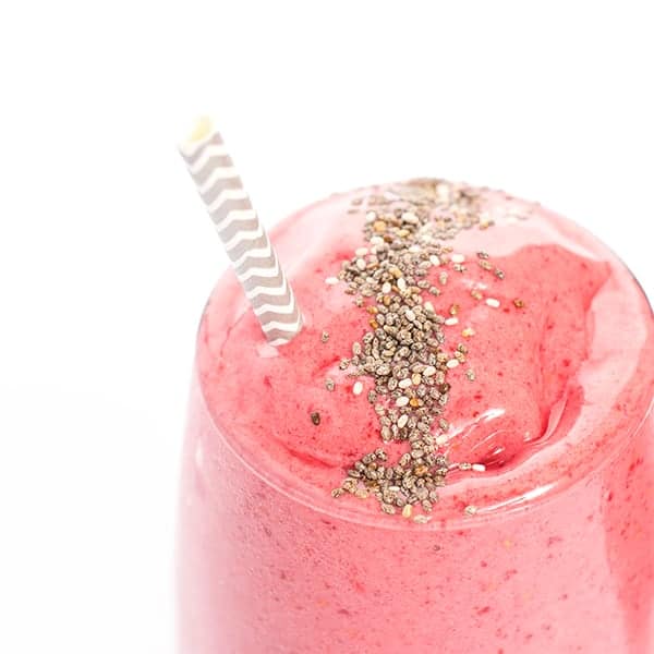 Before serving, I sprinkle each glass with chia seeds to add a crunchy texture to each sip. You’re welcome to blend them in with the rest of the ingredients as well.