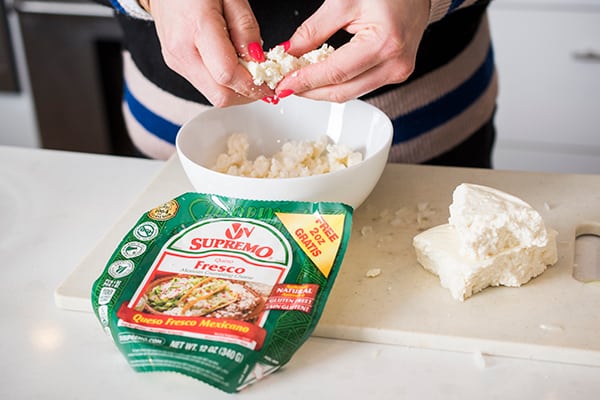 Serve with a sprinkle of cilantro, more queso fresco or a dollop of sour cream and dinner is done.