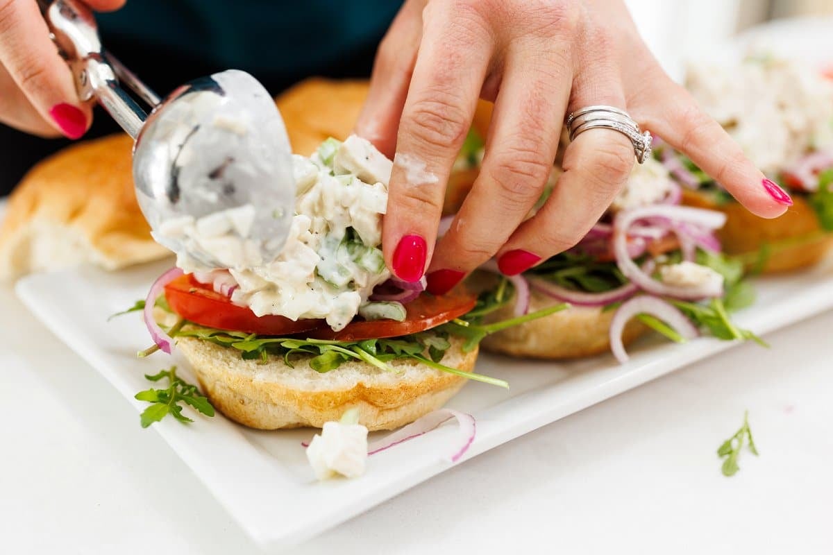 - Mayonnaise: Mayo flavor is part of a classic chicken salad, and keeps the sandwich from being too dry.