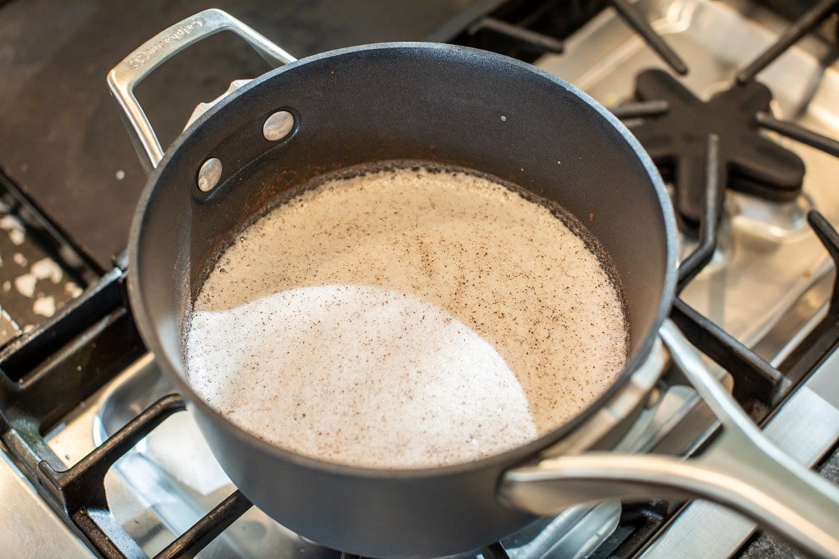 - Add milk to a large saucepot and whisk in cinnamon, salt and sugar until thoroughly combined. Bring milk to a gentle boil over medium heat, whisking occasionally. Keep a close eye being careful not to scorch the milk.