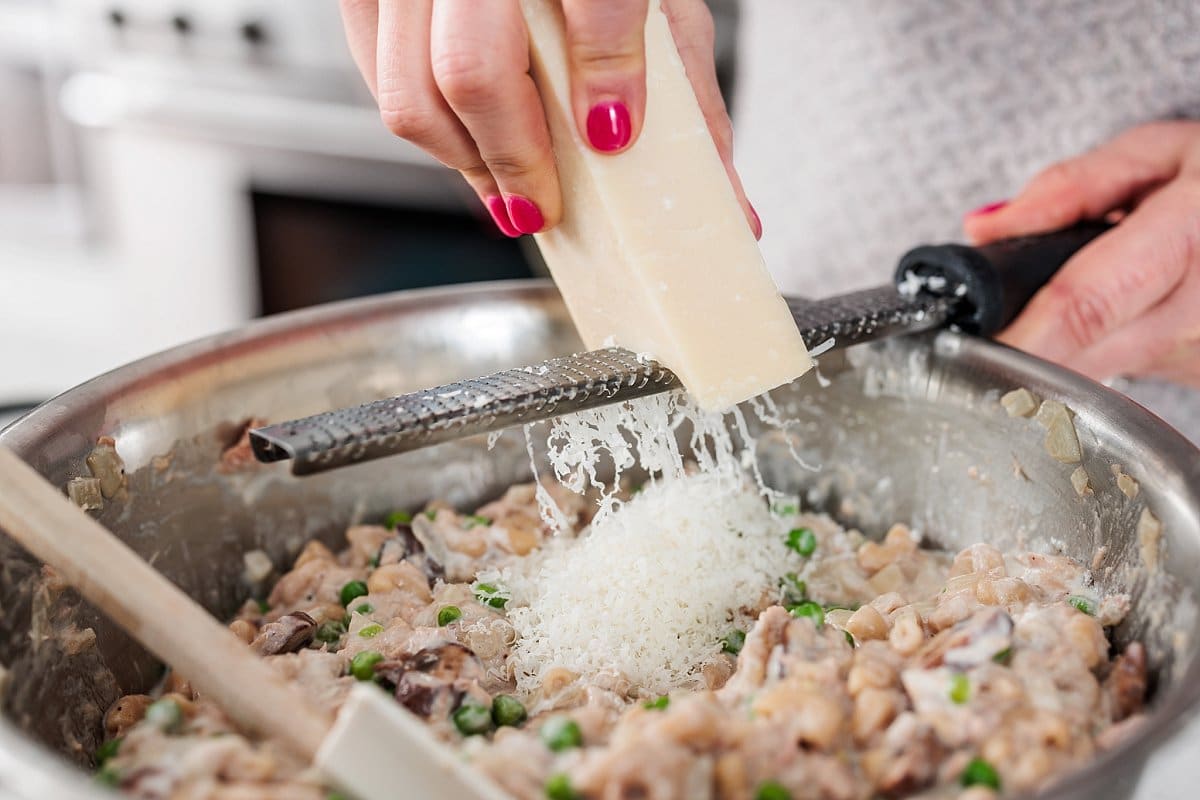 Finish with freshly grated parmesan cheese, and season with additional salt and pepper.