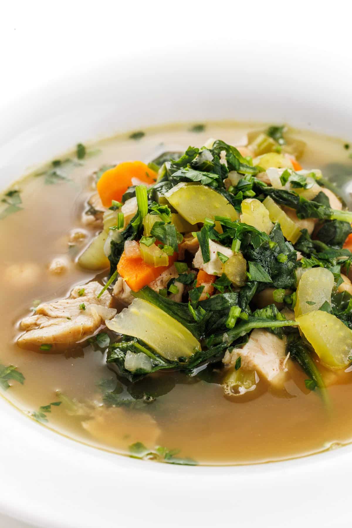 Loaded with fresh veggies and plenty of lean protein, this chicken soup with greens is the perfect meal-in-a-bowl.
