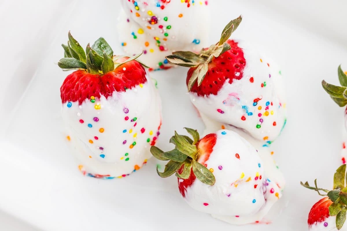 - Use chocolate. While likely upping the sugar content, you could melt chocolate with some coconut oil in the microwave and coat the strawberries with that, too.