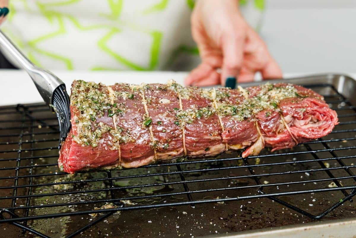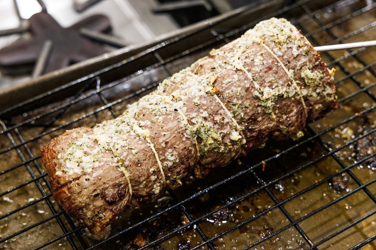 Step 6. Once removed from the oven, let rest for 10 minutes for juices to distribute. Then remove twine and slice to serve.