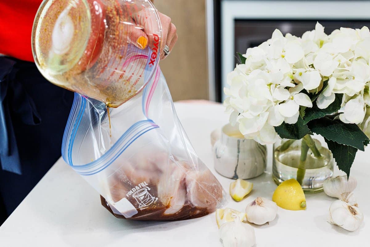 A quick and easy, mess-free dinner recipe, chicken and vegetables are marinated in an sweet sesame ginger Asian inspired sauce before hitting the grill.