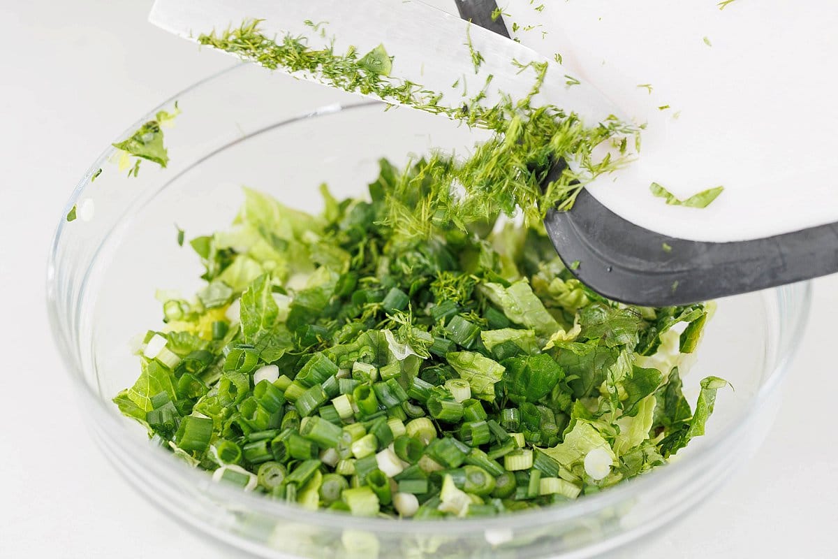 Next, add the minced dill and garlic to the bowl. Fresh parsley would also be a great addition!