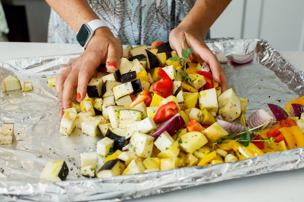 I’m always looking for new side dish recipes that squeeze in a serving or two of vegetables. From my apple roasted sweet potatoes and onions to Indian spiced zucchini and tomatoes, I love finding creative ways to transform vegetables. These Greek roasted vegetables are a family favorite because they can be cooked multiple ways! Quick, easy, and packed with flavor – it’s going to be your new favorite vegetarian side dish.