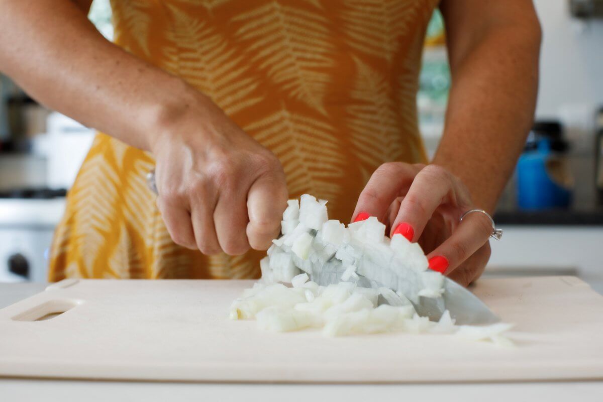 - Onion: A white onion is mild enough to not overpower the simple dish with onion flavor, but still adds some depth of flavor.