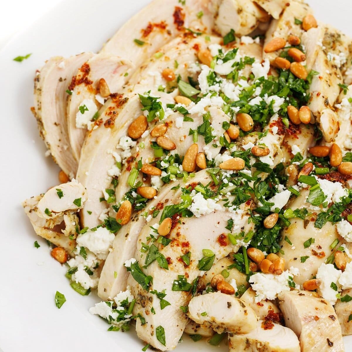 Garnish with fresh parsley, toasted pine nuts, or feta cheese. Serve, and enjoy your Greek Style Baked Chicken Breasts!