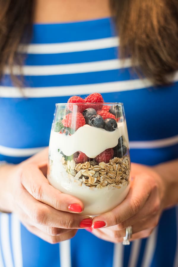 One of my favorite make-ahead breakfast recipes is a quick and easy Greek yogurt parfait. For these parfaits I layer three simple ingredients: Bob’s Red Mill muesli, Greek yogurt and fresh berries.