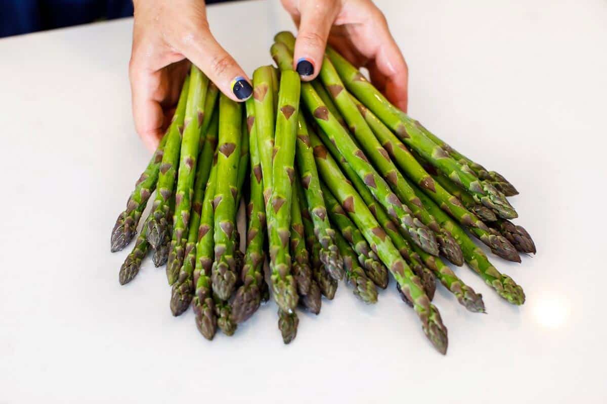 2. Wash and trim asparagus then place in a large zip-lock bag.