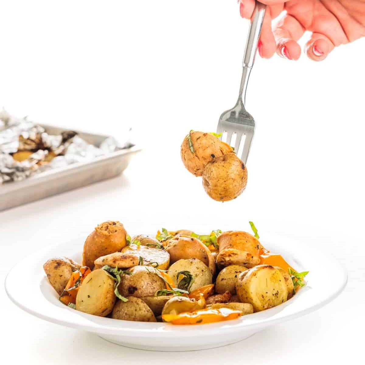 - Change the veggies. You can easily swap out the peppers and potatoes for other vegetables, or add more in! Onions, carrots, broccoli, and more would taste great this way!
