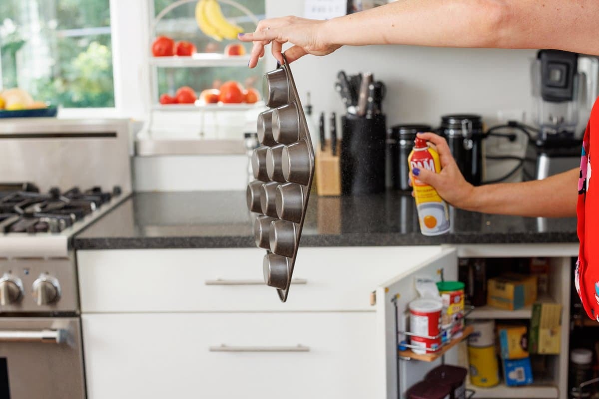 - Pre-heat oven to 350 degrees and spray a muffin pan with cooking spray or use a silicone pan.
