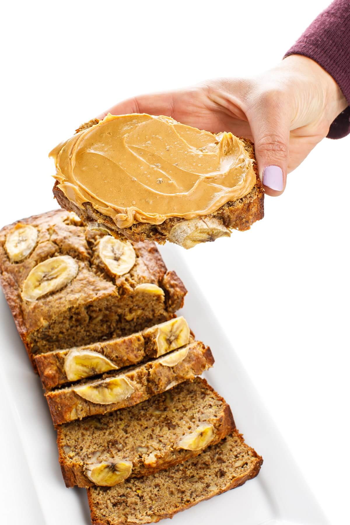 Whenever I bake from scratch, I like to find ways to boost the overall nutrition of the baked good. Whether it’s a blueberry yogurt bread, strawberry oatmeal muffins or chocolate chip zucchini bread, I love finding ways to make baked goods more nutritious. As such, I’m going to share a few simple steps I take to create a healthy banana bread recipe that is still perfectly moist and delicious.