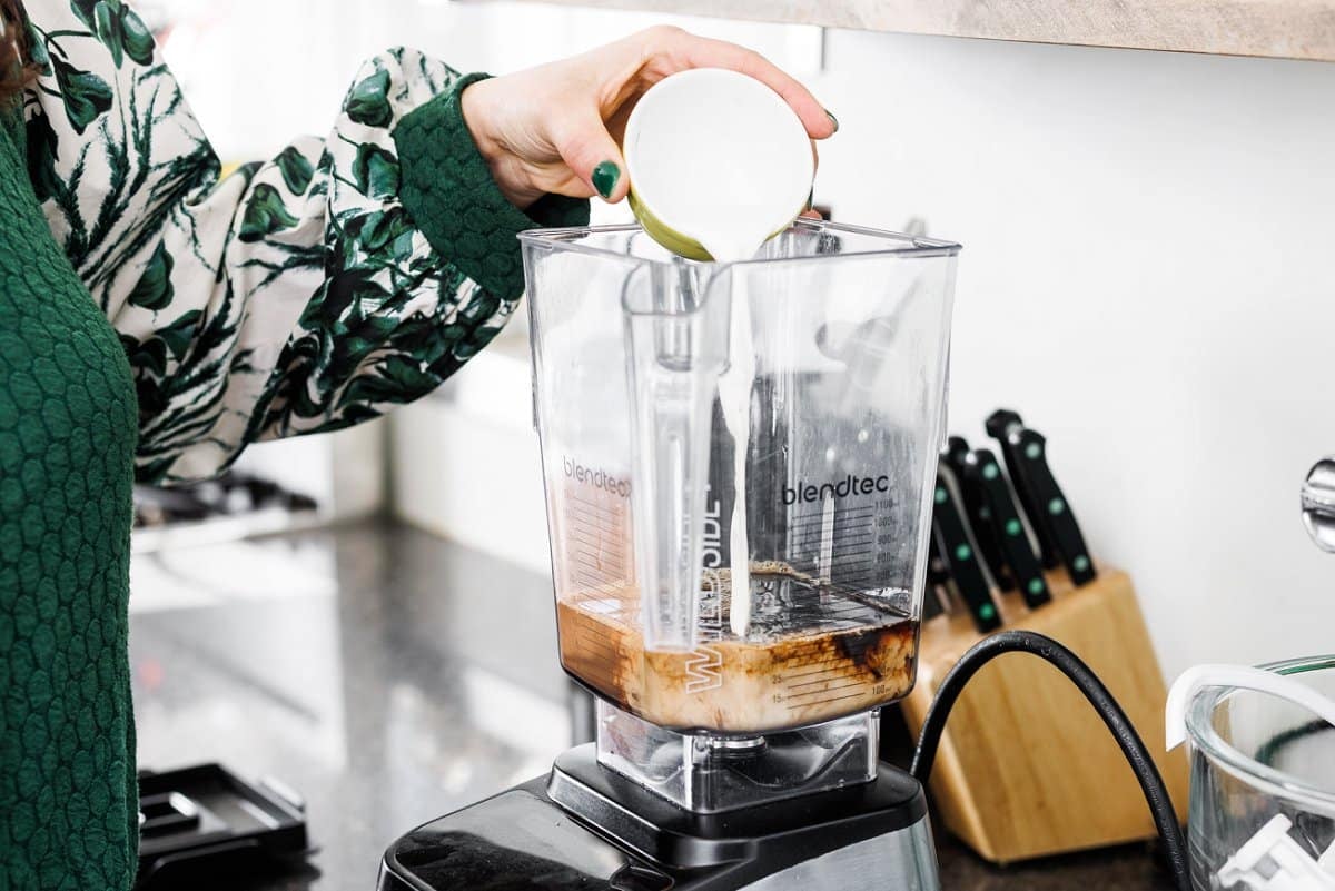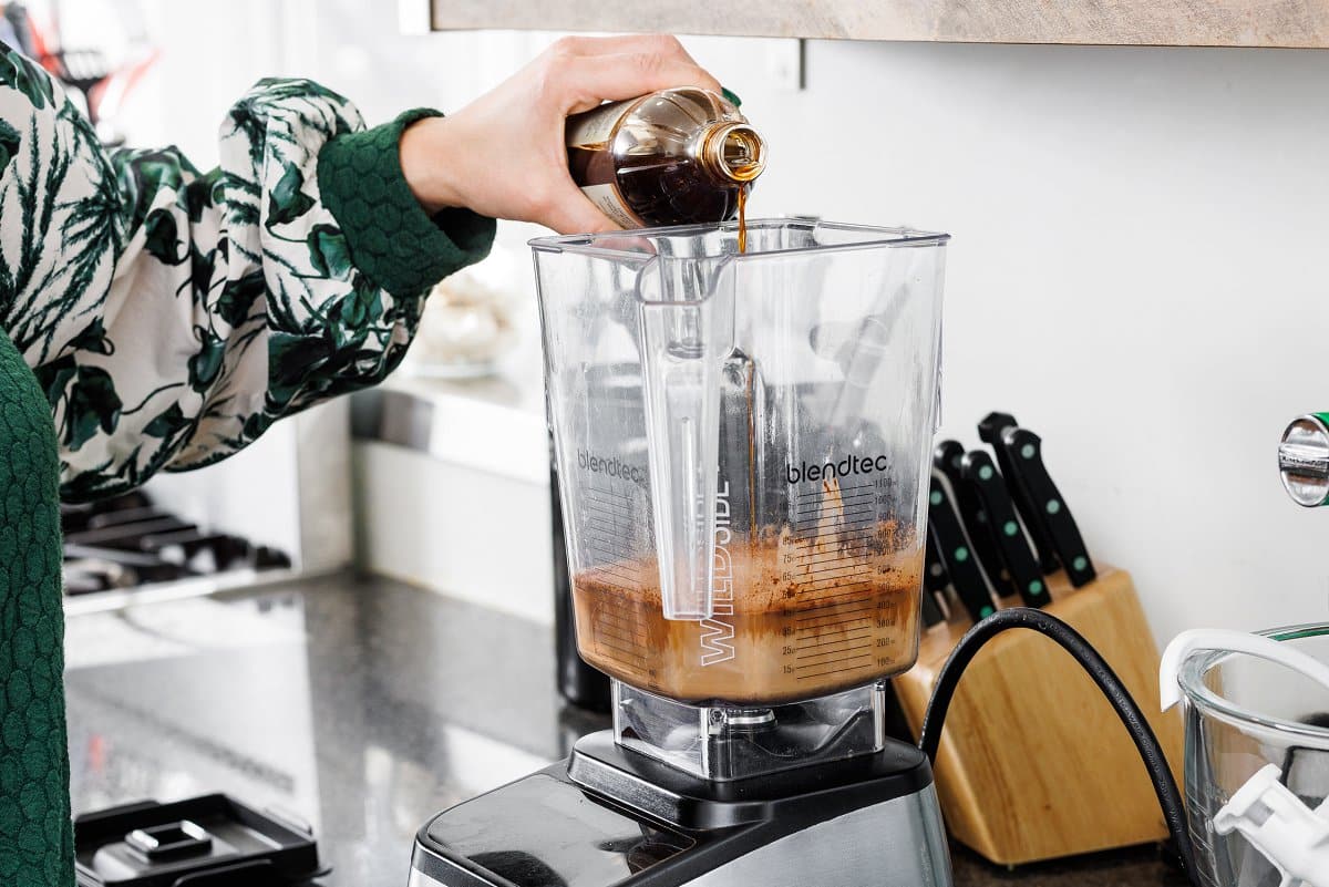 Start your healthy Starbucks mocha Frappuccino by adding your coffee to a blender.