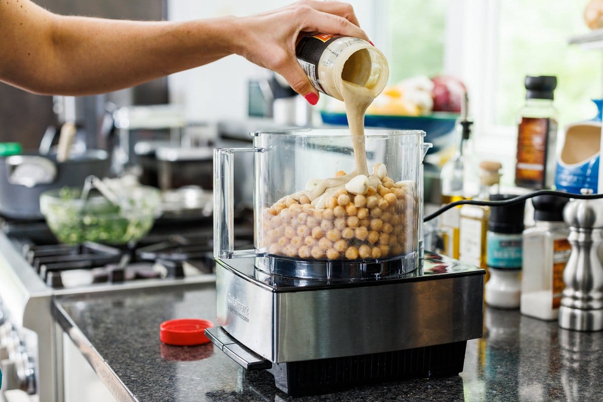 - Start by making the hummus: place all ingredients in a food processor and puree until smooth. Check for seasoning and add more garlic, lemon or salt as desired; set aside.