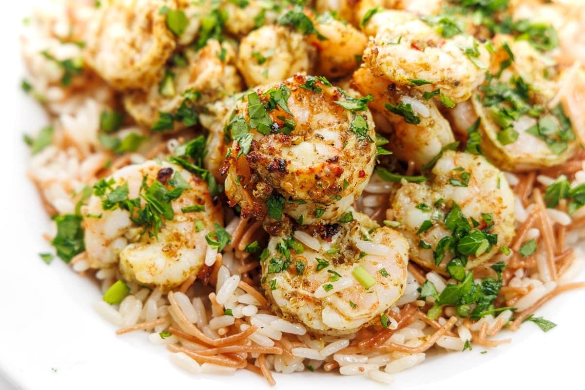 It’s never been easier to make seafood at home than now. Shopping at my local D&W Fresh Market, they have a wonderful selection of both fresh and frozen seafood that you can turn into a healthy meal at home. And with appliances like an Instant Pot and air fryer, healthy meals come together so quickly! With my groceries delivered quickly and affordably, I came up with this delicious Lebanese Air Fryer Shrimp, that I highly recommend you serve over my Lebanese Rice Pilaf with Vermicelli.