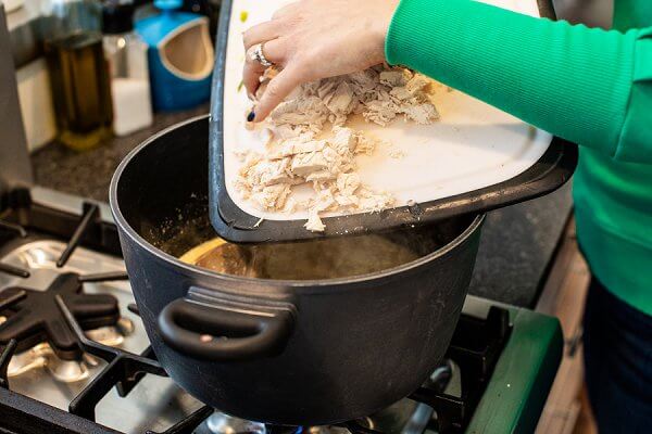 5. Add shredded chicken breasts and cook until heated through. Check for seasoning and adjust accordingly. Serve with sliced scallions if you wish.