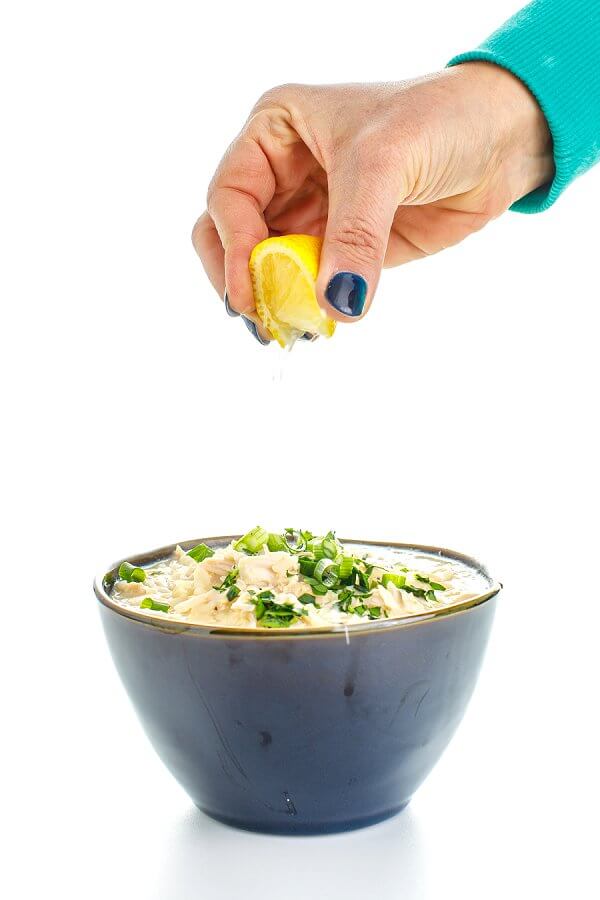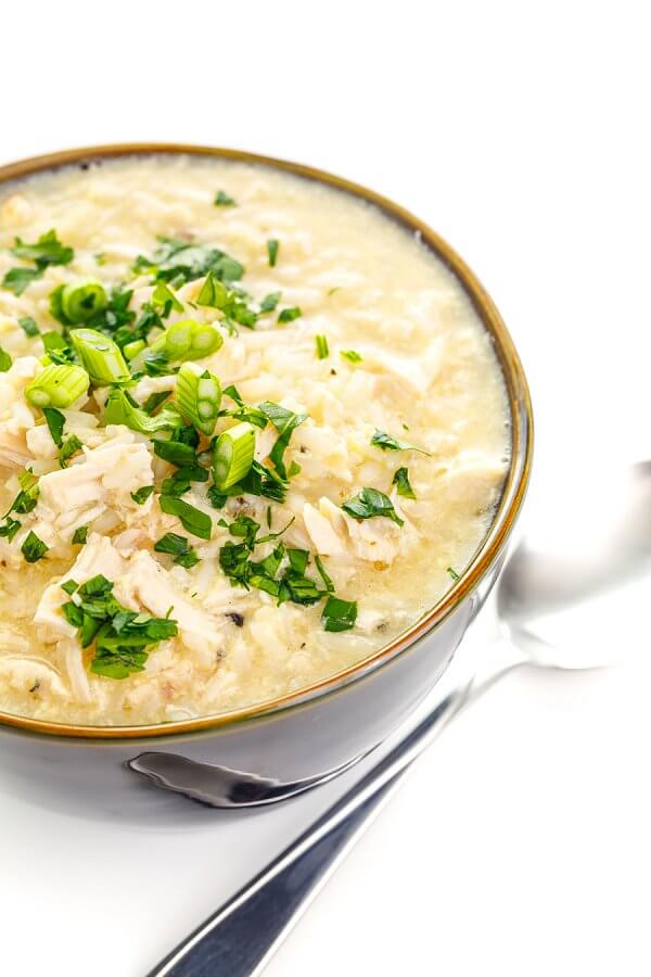 A traditional Greek soup, avgolemono is an egg-lemon soup packed with shredded chicken and white rice. Freezer-friendly and ready in under 30 minutes.