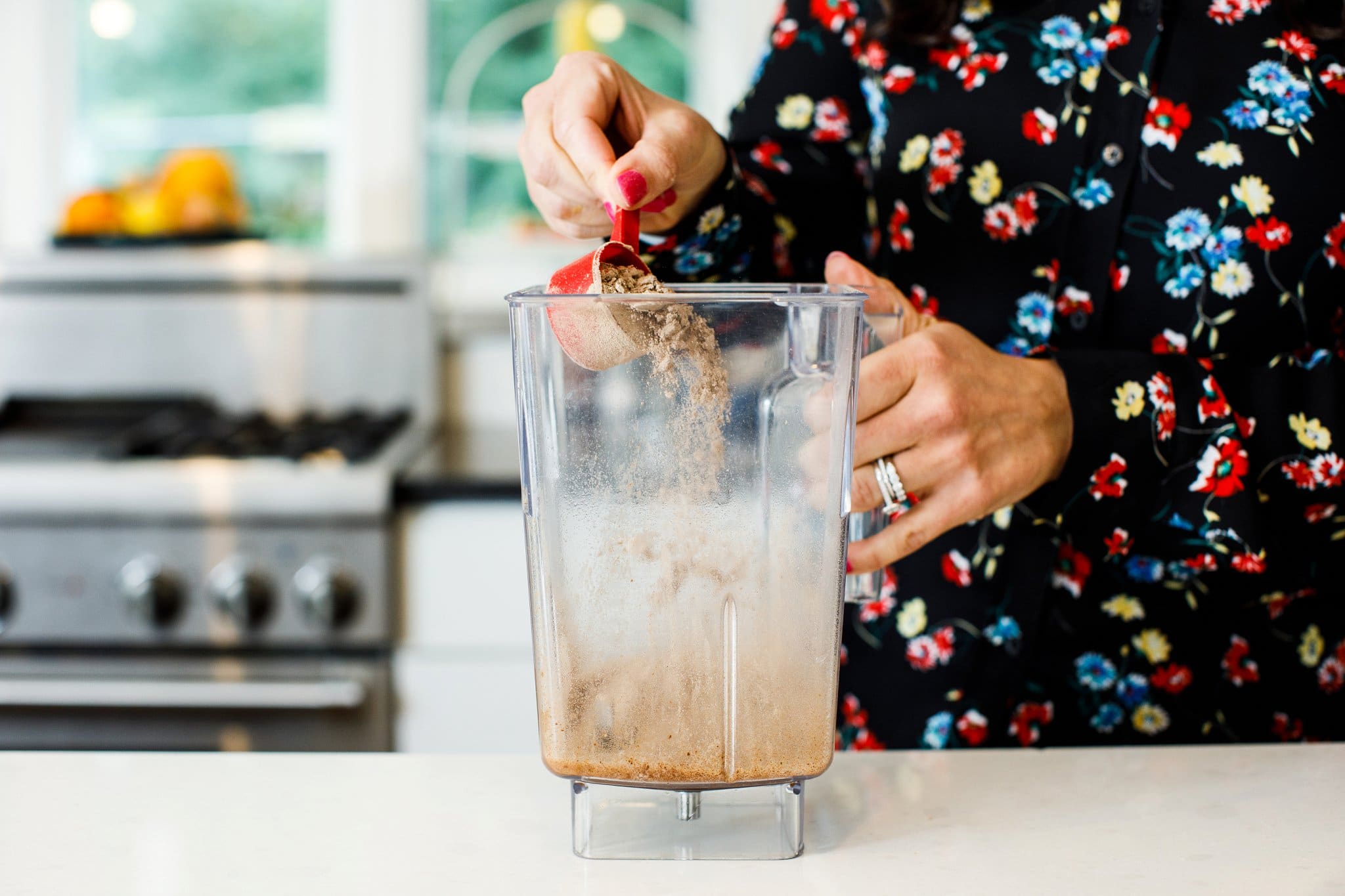 Step 1. Add the protein powder, cocoa powder, and cinnamon to your blender.