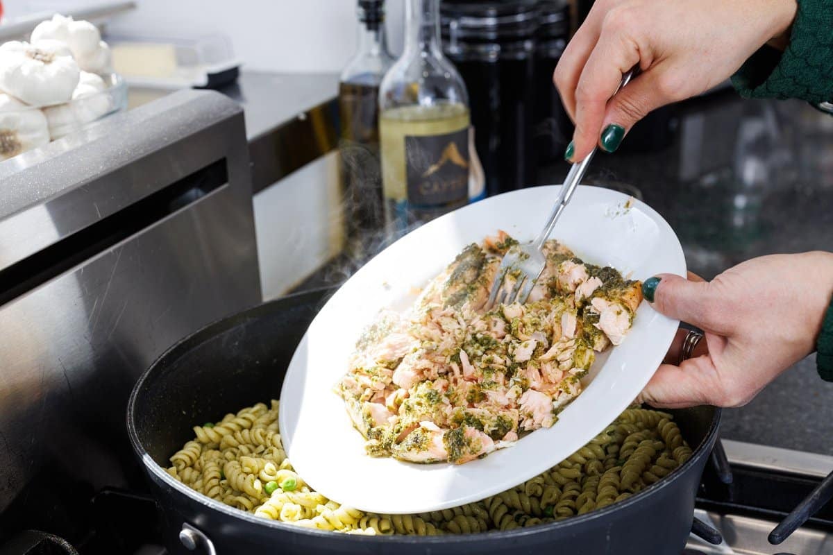 How to Make Pesto Pasta with Salmon and Peas