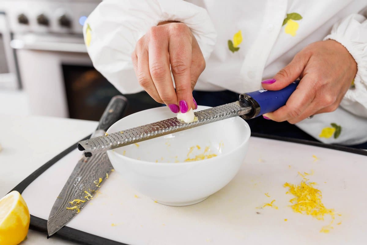 Then use a microplane or grater to zest your lemon into a small bowl.