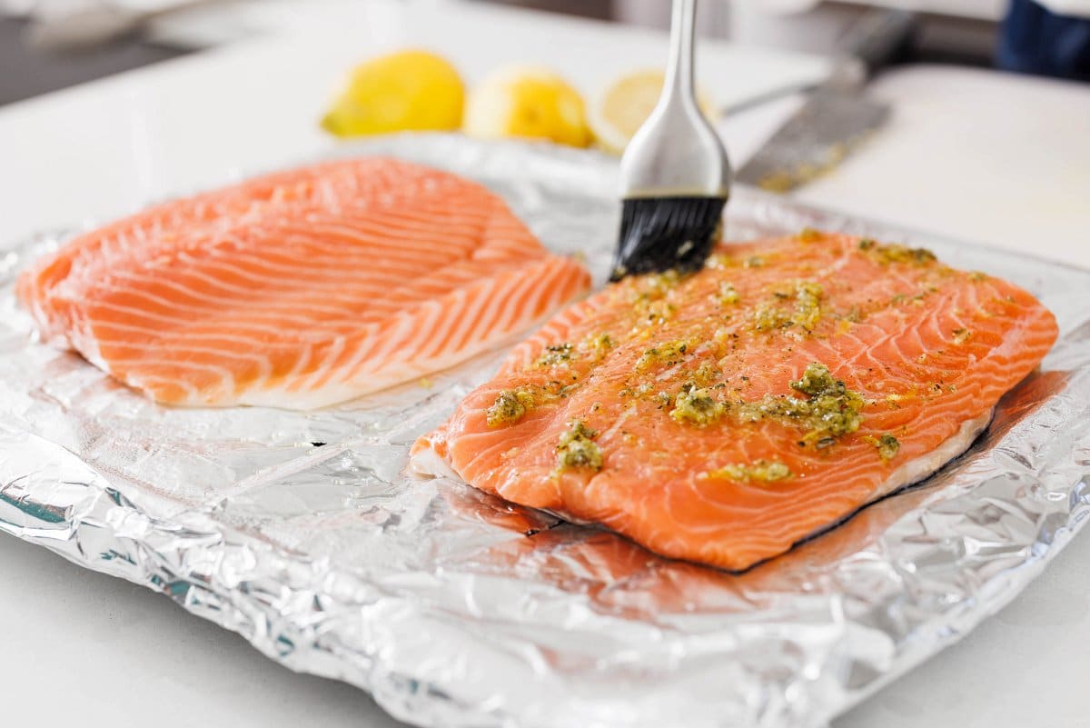 Salmon pairs well with so many herbs and spices. Common ones include oregano, parsley, rosemary, cilantro, thyme, and basil.