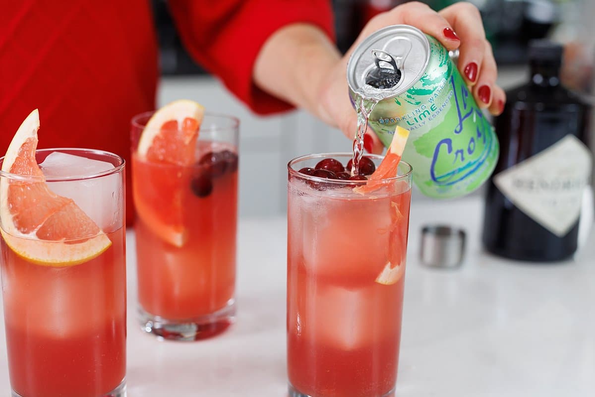 If you’re feeling fancy, add whole cranberries and slices of grapefruit to your glasses as a garnish.