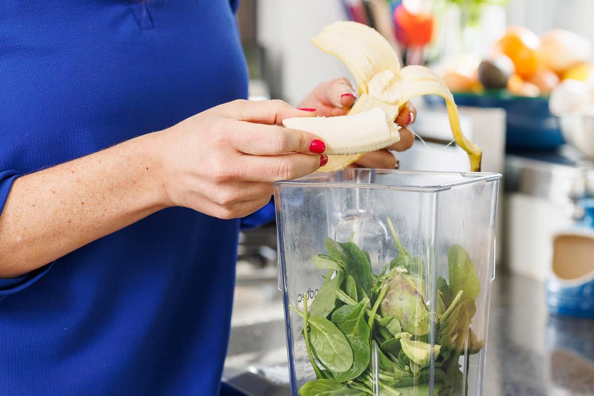 Peel the banana and add it to the mix.