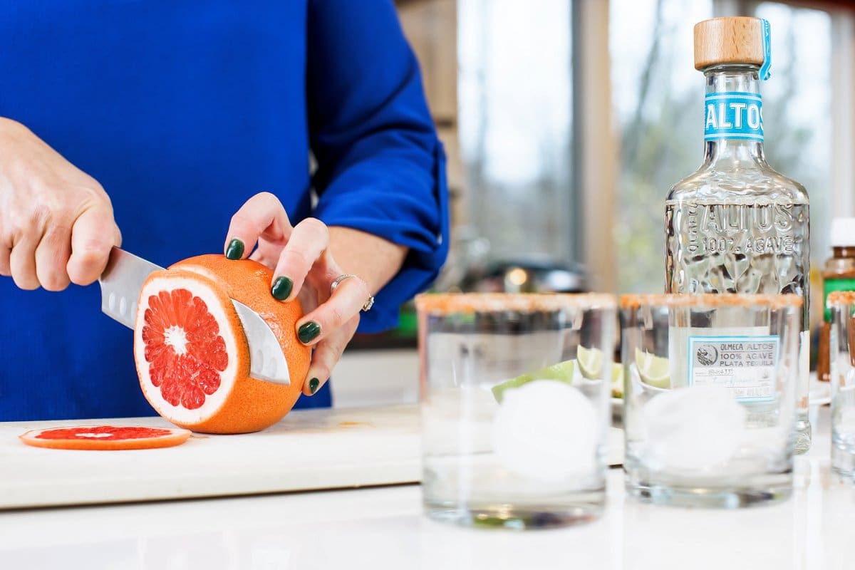 Bright, refreshing, and effervescent, this skinny grapefruit margarita is the ultimate guilt-free, low calorie and low carb cocktail recipe.