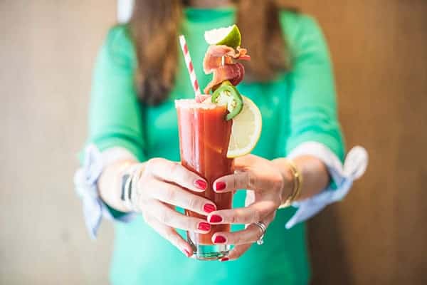 Because let’s be honest, when made right, a Bloody Mary is almost as filling as a meal. That is definitely the case with my over-the-top bacon garnish filled with pickles, salami and other goodies.