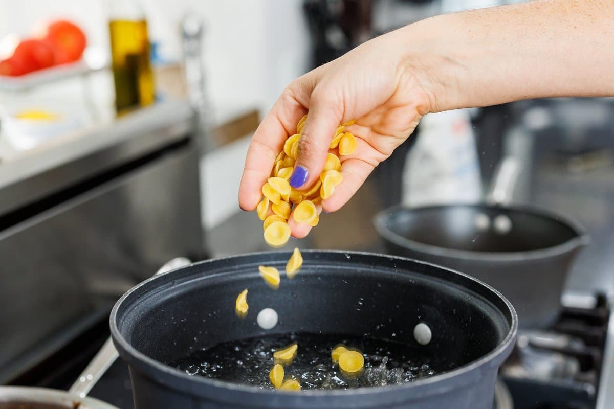 1. Bring a large pot of salty water to a boil and prepare pasta according to package instructions.